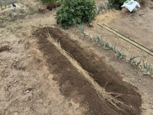 📸 手順②:溝にワラ(枯れ草)を敷く