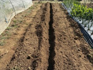 - 中央に植え付け用の溝を掘る(深さ10cm)