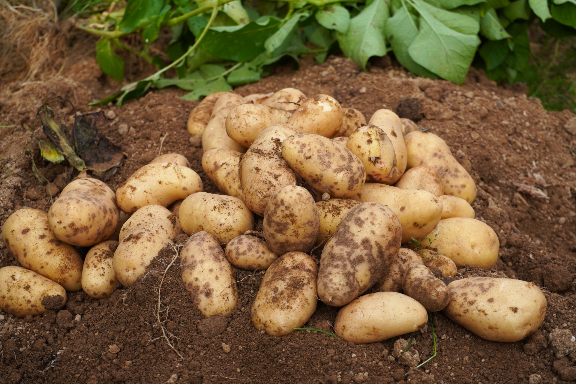 植え付けからしばらくすると、土の表面にじゃがいもの芽が顔を出します。 この段階ではまだ芽を触らず、生育の様子を見守ります。